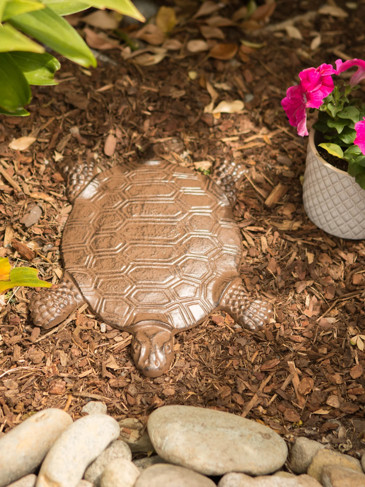 • This turtle stepping stone is just what your garden or yard needs! Beautifully detailed and cast from iron, it will be your favorite outdoor accent for years to come.